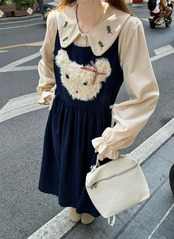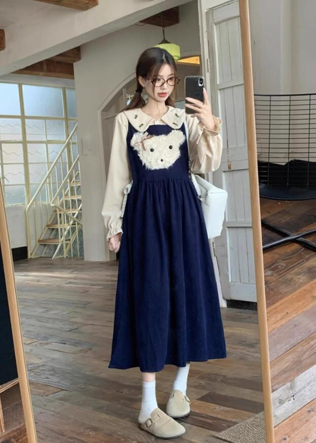 秋冬新作 女 レディース ハイウエスト 袖なし コールテン ロング ワンピース 台型スカート セット