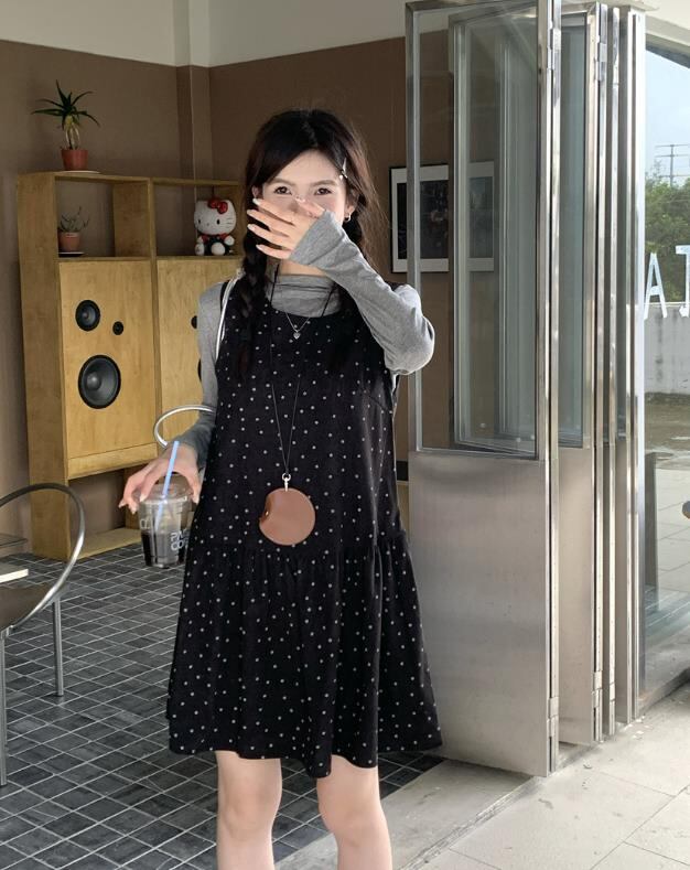 秋冬新作 女 レディース ハイウエスト 袖なし コールテン ミニ ワンピース ドレス 台型スカート セット