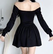 2024秋冬新作 女 レディース ハイウエスト 長袖 Vネック ベロア ミニ ワンピース ドレス 台型スカート