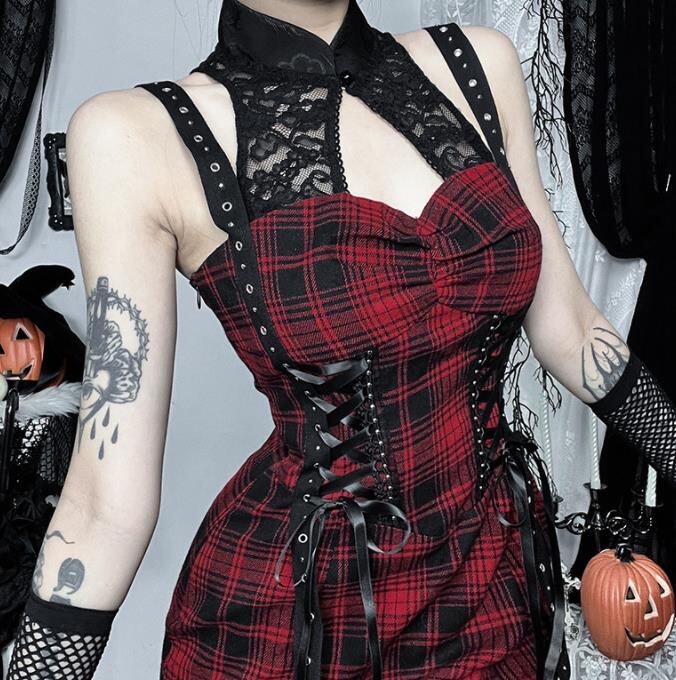 2024春秋新作 ハロウィン 女 レディース 袖なし チェック柄 ロング ワンピース 台型スカート