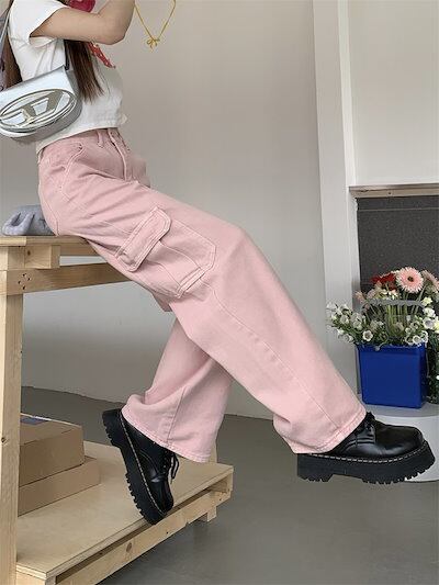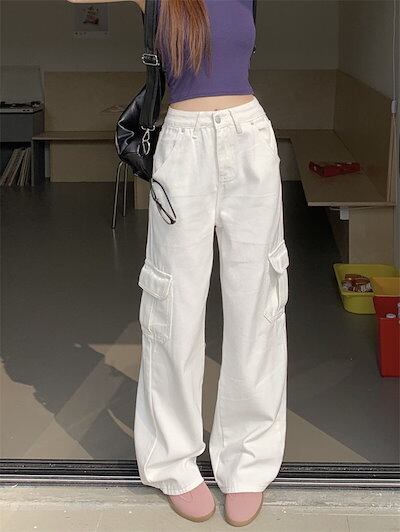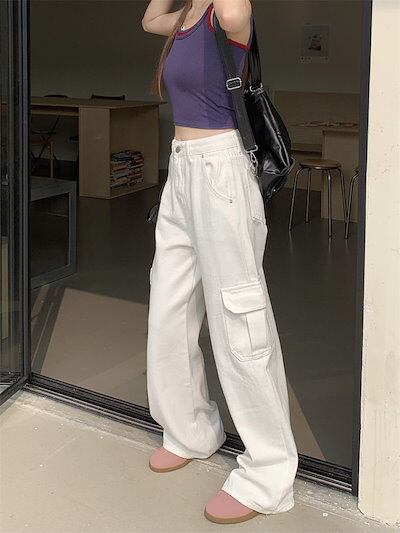 2024 春夏パンツ デニム ジーンズ ワイド ストレート ハイウエスト 脚長効果 美脚効果 細見え ポケット付き 春 白 カジュアル 韓国ファッション レディース お出かけ | OPEN-korea