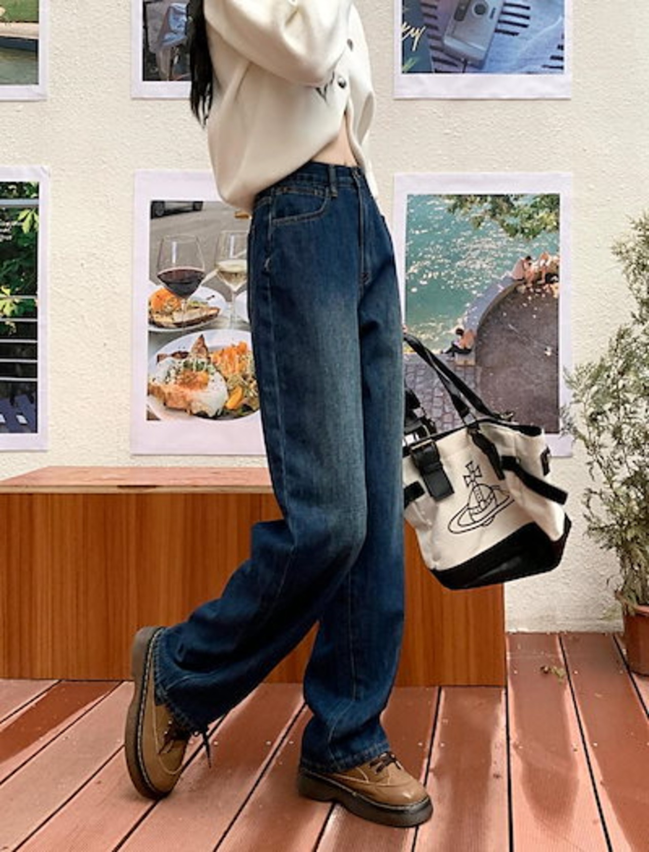 【短/長2タイプ】人気 デニムパンツ レディース ゆったり ワイド ハイウエスト フレア ダメージ 大きいサイズ レディースロングパンツ ストレート ストレッチ スキニー ジーンズ け メガ割 | OPEN-korea