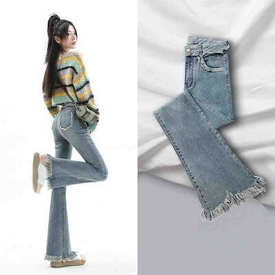 春秋新作 ガウチョパンツ ジーパン ハイウエスト 着痩せ やせて見える 復古 ラッパズボン ワイドパンツ レディース