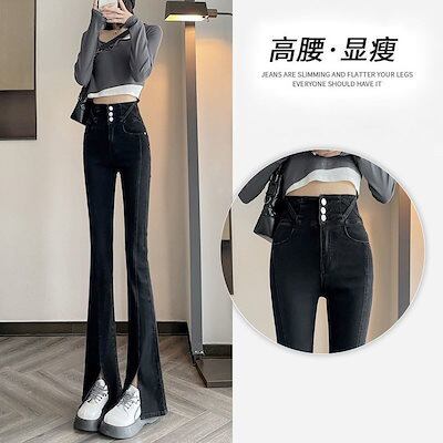 春秋新作 ガウチョパンツ ジーパン フォーク本 ばね力 ハイウエスト 着痩せ やせて見える ラッパズボン ワイドパンツ レディース