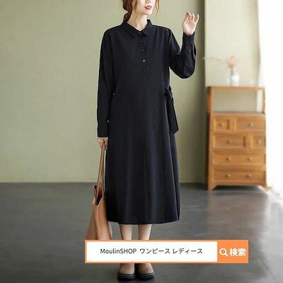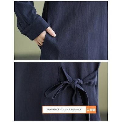 レディース レディース ロングワンピース マキシワンピース ロング マキシ丈 コットン リネン 綿麻 きれいめ Aライン フレア 長袖 大きいサイズ 森ガ