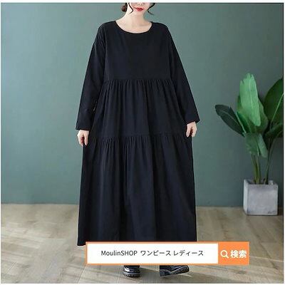ワンピース 長袖 レディース レディース ロングワンピース マキシワンピース ロング マキシ丈 Aライン フレア 大人 コットン 黒 きれいめ リゾート カジュアル