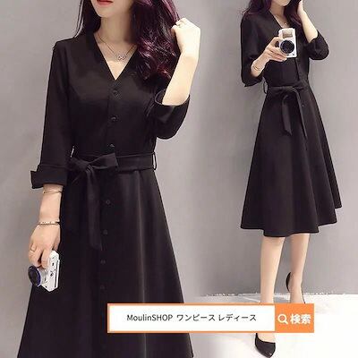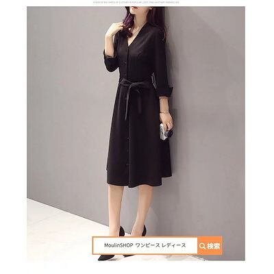 ワンピース レディース レディース ロングワンピース ロング 膝丈 きれいめ Aライン 大人 ミディアム丈 Vネック 秋冬 秋 冬 春 夏 シンプル 無地 ワンピ 長袖 大