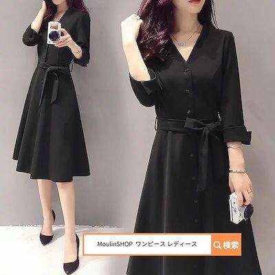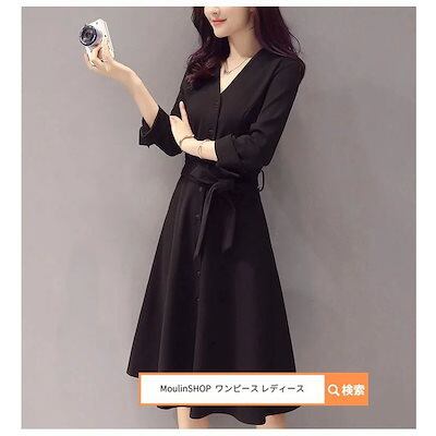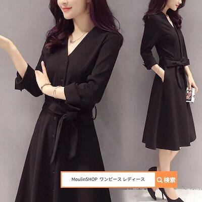 レディース レディース ロングワンピース ロング 膝丈 きれいめ Aライン 大人 ミディアム丈 Vネック 秋冬 秋 冬 春 夏 シンプル 無地 ワンピ 長袖 大