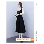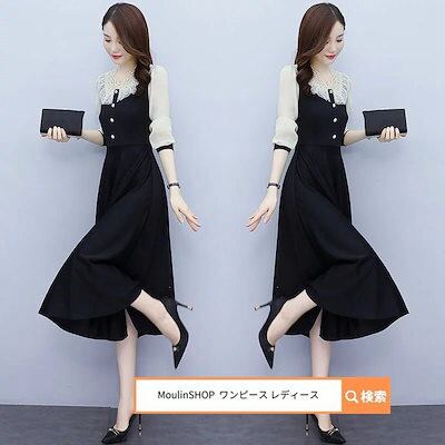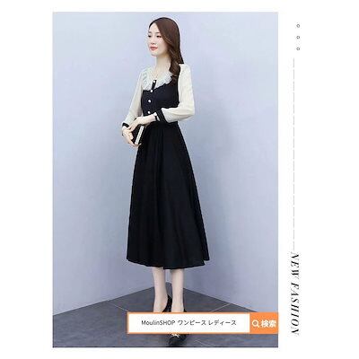 レディース レディース ロングワンピース マキシワンピース 韓国 ロング ミモレ丈 マキシ丈 黒 白 切り替え きれいめ Aライン フレア 大人 上品 長袖