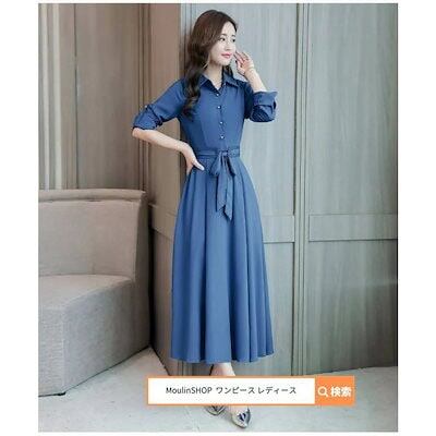 秋冬 長袖 大きいサイズ ワンピース レディース レディース ロングワンピース シャツワンピース ロング マキシ丈 きれいめ Aライン フレア 大人 春 春夏 夏 秋