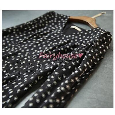 ワンピース レディース 40代 きれいめ マキシワンピース 春秋 長袖ワンピース Vネック ドット柄 Aラインスカート オシャレ大人 着痩せドレス ゆったり 30代