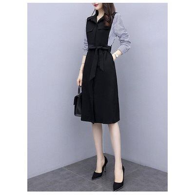 シャツワンピース レディース ワンピース 秋 きれいめ 長袖 ボーダー柄ワ ロング丈 vネック膝丈ワンピース Aライン 着痩せ 通勤 結婚式 お出かけ おしゃれ