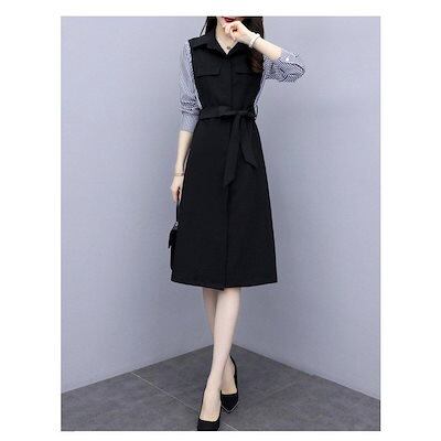 シャツワンピース レディース ワンピース 秋 きれいめ 膝丈ワンピース 長袖 ボーダー柄ワ ロング丈 vネック Aライン 着痩せ 通勤 結婚式 お出かけ おしゃれ