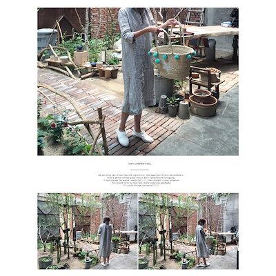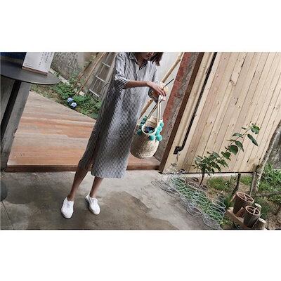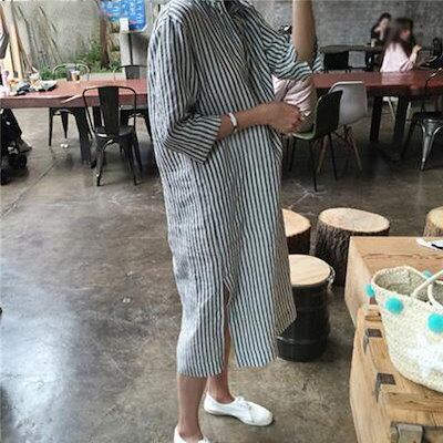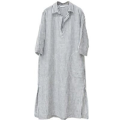 ワンピース レディース ロングシャツ 7分袖 ストライプ ボーター柄 七分袖 ロングワンピース リネン 綿麻 ワンピ マキシ ゆったり Aライン