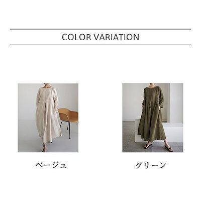 マキシワンピース レディース 長袖 ロング丈 トップス 綿麻混 ミモレ丈 秋冬 フレア 上品 ナチュラル シンプル 体型カバー Aライン お洒落