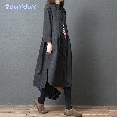 シャツワンピース 秋 レディース ワンピース 長袖 膝丈 チュニック aラインワンピース ゆったり 秋ワンピース 無地 体型カバー ママ 30代 40代 50代