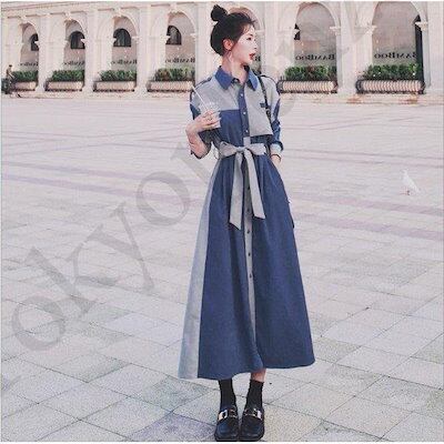 ワンピース レディース 春 きれいめ 長袖 ロングワンピース Aライン ベルト付き 可愛い ゆったり