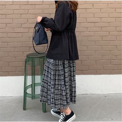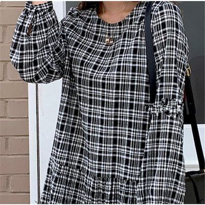 ワンピース レディース ロングワンピース チェック 春 長袖 ロング丈 aライン マキシワンピース