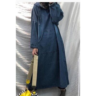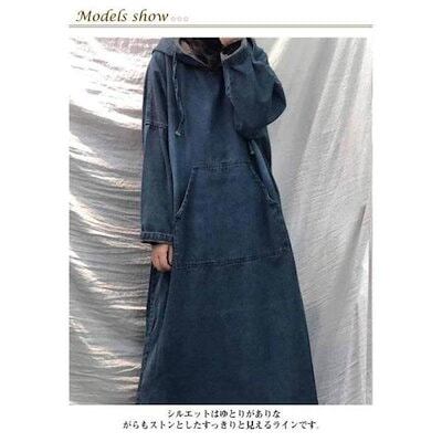 新品 大人気 デニムワンピース ワンピース レディース デニムワンピ パーカーワンピース マキシワンピー 長袖 ロングワンピース プルオーバー マキシ丈 Aラインワンピース
