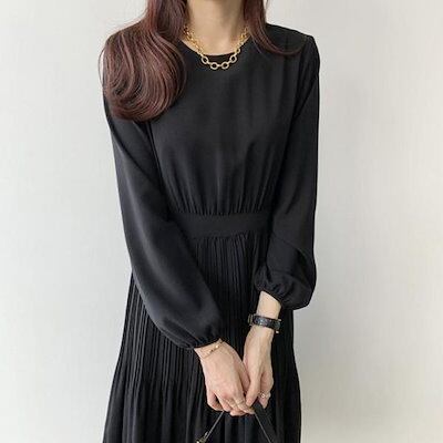 大人気 上品 ロングワンピース 春 秋 レディース ワンピース Aライン 入学式 卒業式 着痩せ ミモレ丈 きれいめ 無地 プリーツ 上品 通勤 OL 二次会 春コーデ