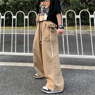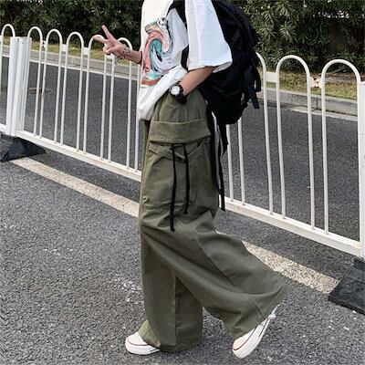 ワイドパンツ カーゴパンツ メンズ レディース ミリタリー 春 夏 秋 カーゴ コットン ガウチョパンツ 無地 ボトムス ポケット 長ズボン 大きいサイズ ウエストゴム 体型カバー 着回し アウトドア | OPEN-korea
