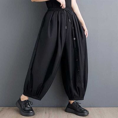 「ファットガール」 2024夏 ワイドパンツ ゴム ハイウエスト 大きいサイズ 体型カバー レディース パンツ
