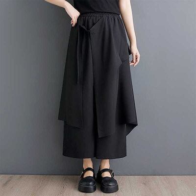 「ファットガール」 2024夏 ワイドパンツ 大きいサイズ ニセ2セット レディース 体型カバー パンツ