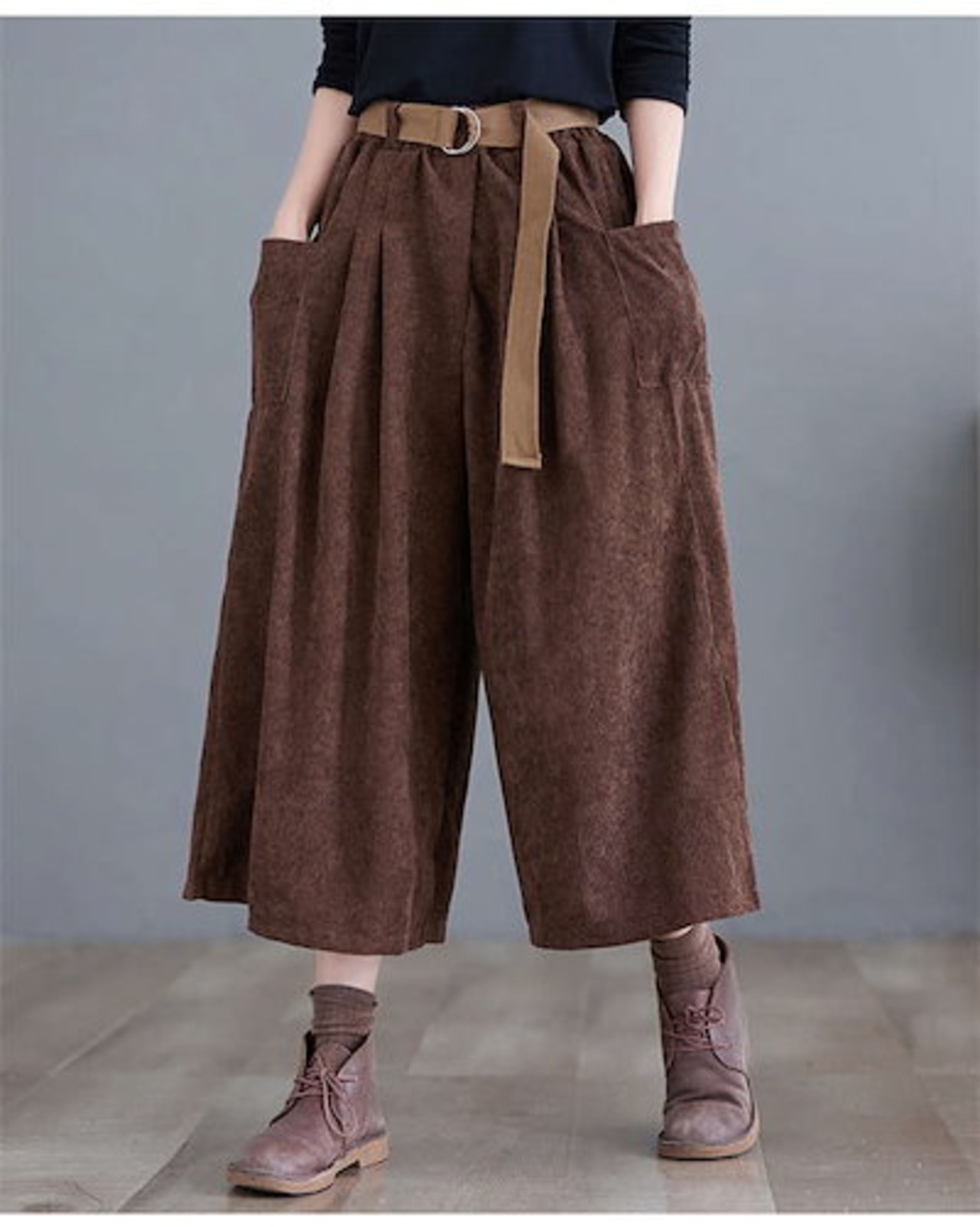 ワイドパンツ レディース コーデュロイ ガウチョパンツ 9分丈 パンツ 体型カバー コーデュロイパンツ 大きいサイズ ボトムズ 春 秋 着痩せ 美脚 ゆったり 着痩 お洒落 快適 定番 ワイドガウチョ | OPEN-korea