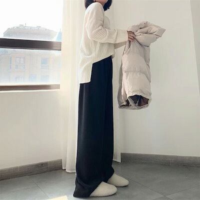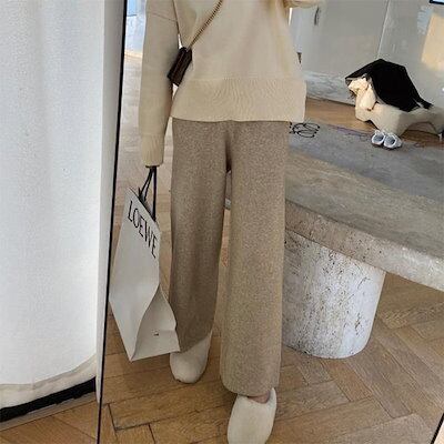 6色 リブ パンツ 秋 秋冬 ウエストゴム プリーツパンツ レディース 冬 ストレートパンツ ニットパンツ リブニット ワイドパンツ リブパンツ リブニットパンツ 大きいサイズ | OPEN-korea