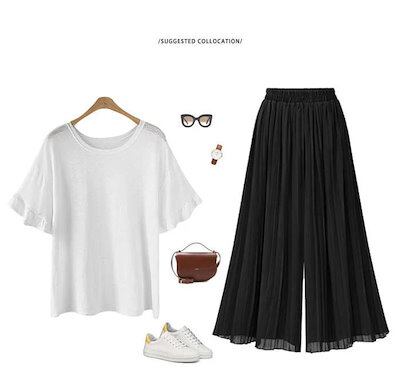 メガ割-プリーツパンツ ワイドパンツ リラックスパンツ フレアパンツ シフォン ガウチョ スカーチョ プリーツ パンツ レディース きれいめ 可愛い 無地 大きいサイズ 体型カバー おしゃれ ゆったり | OPEN-korea