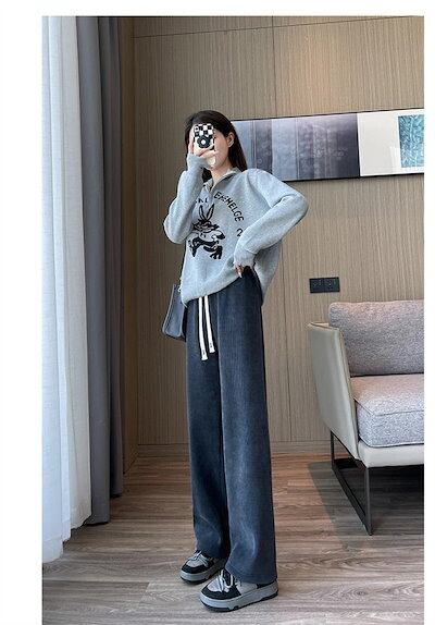 裏起毛パンツ リブパンツ ワイドパンツ 裏ボアパンツ レディース 秋 冬 コーデュロイ ロングパンツ 体型カバー ウエストゴム 大きいサイズ ゆったり ズボン ストレッチ 微起毛 ボトムス 着?せ 厚 | OPEN-korea