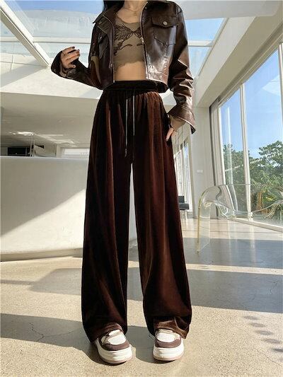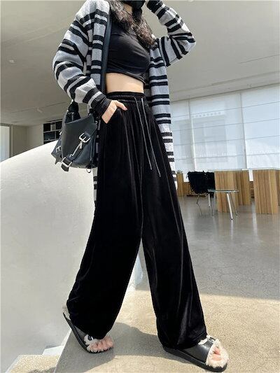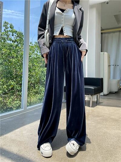 ワイドパンツ 裏起毛 ベロアパンツ レディース パンツ 秋冬 裏ボアパンツ ベルベット ロングパンツ ウエストゴム バギーパンツ 大きいサイズ ゆったり リラックス 着心地よい 光沢感 防寒 暖い 大 | OPEN-korea