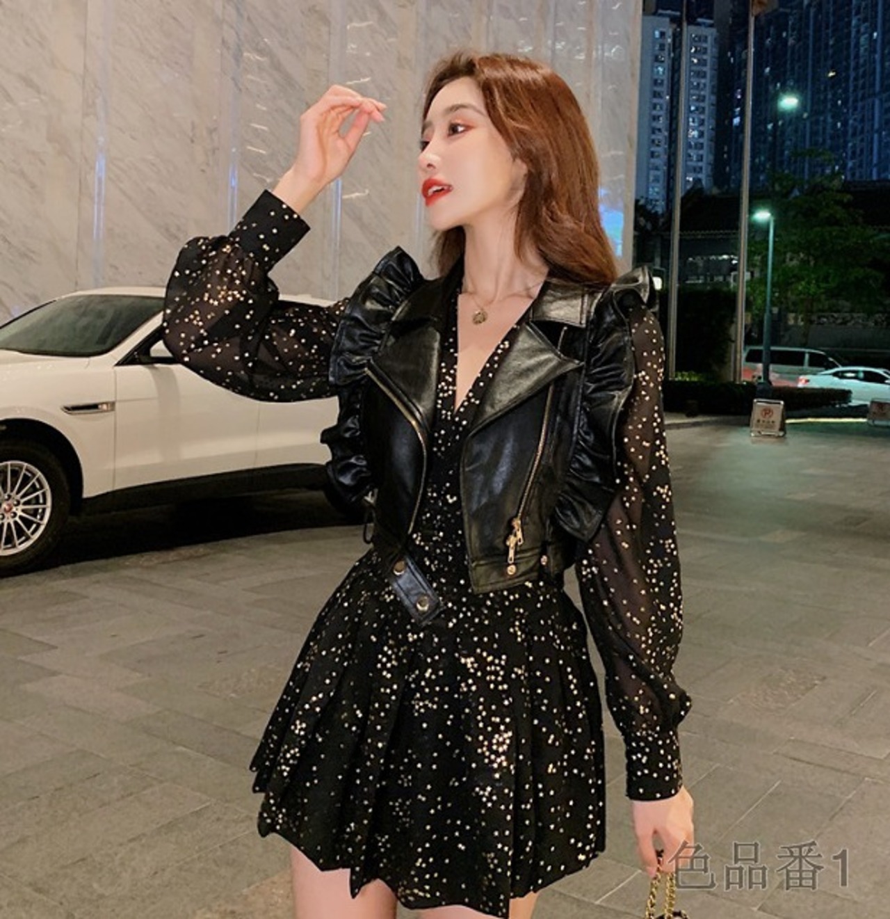 ワンピース フリル 切り替え スリム 着痩せ カジュアル