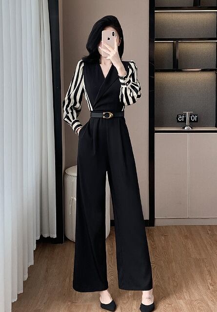 オールインワン オーバーオール 切り替え バイカラー スリム 着痩せ 【大きいサイズあり】