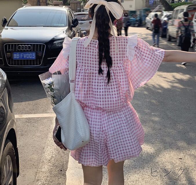全2色 上下セット 2点セット フリル 切り替え バイカラー 体型カバー 着痩せ sweet系