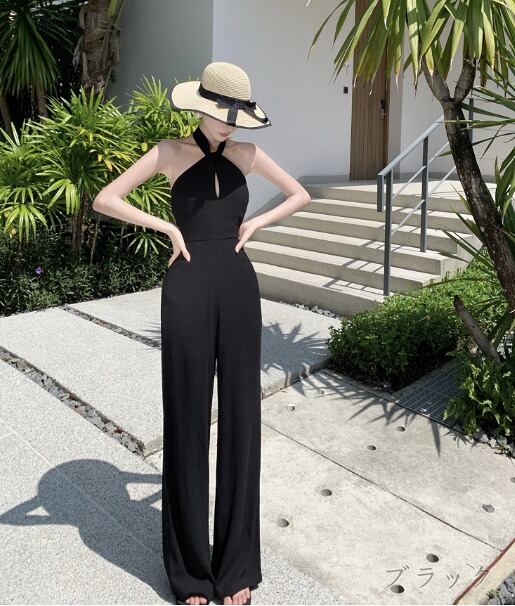 オールインワン オーバーオール ノースリーブ 切り替え スリム 着痩せ シンプル