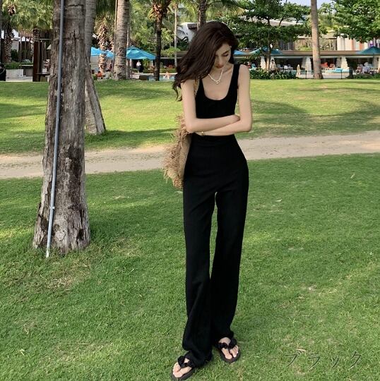 オールインワン オーバーオール ノースリーブ バックオープン 切り替え スリム 着痩せ カジュアル
