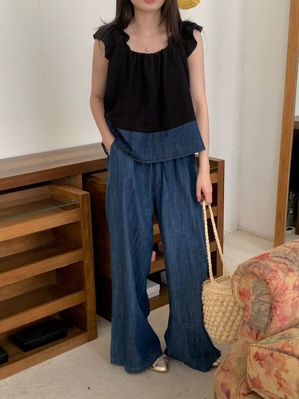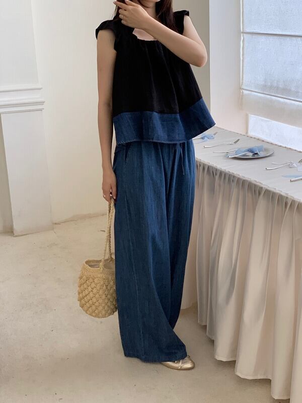 上下セット 2点セット 切り替え バイカラー 体型カバー 着痩せ カジュアル