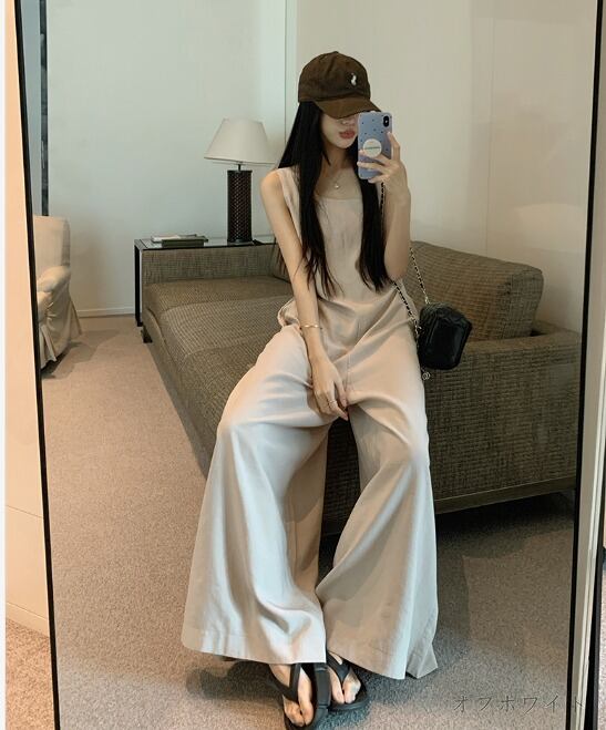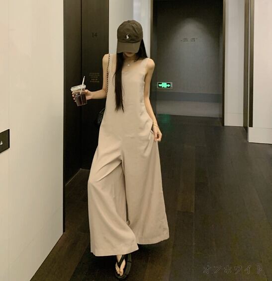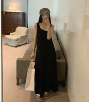 全2色 オールインワン オーバーオール 切り替え 体型カバー 着痩せ カジュアル