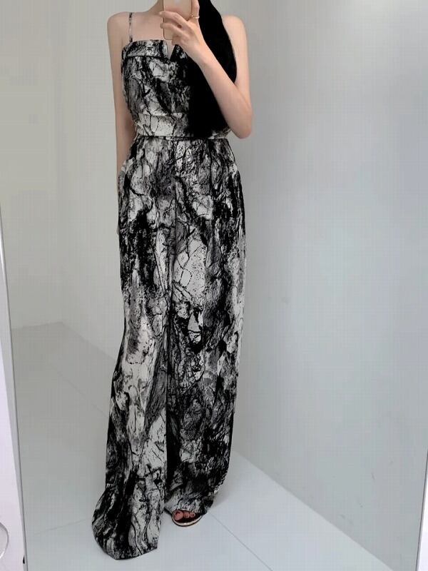 オールインワン オーバーオール ノースリーブ 切り替え バイカラー スリム 着痩せ シンプル