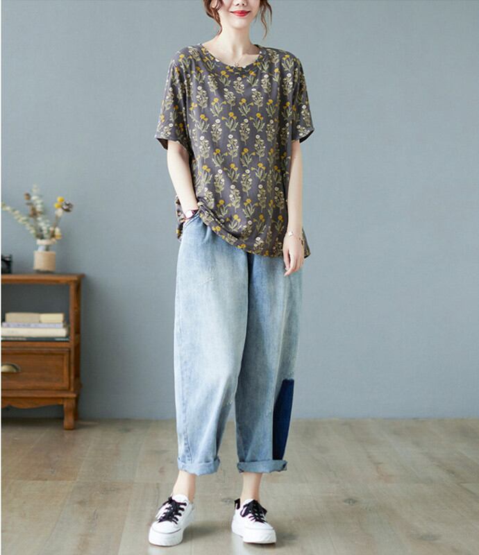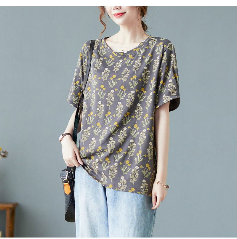 【2022新作】春夏花柄トップス半袖Tシャツカジュアル