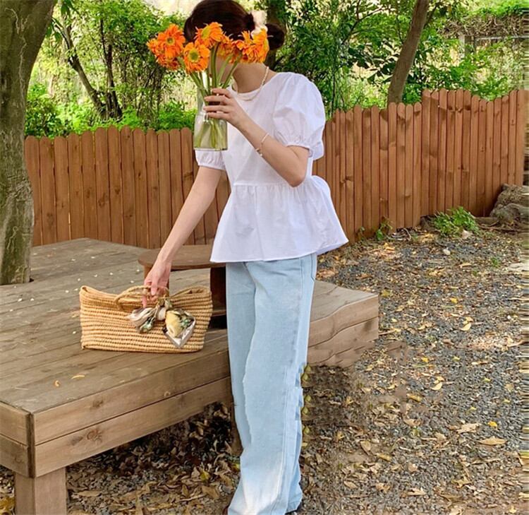 ユニークなデザイン バック 蝶結び 個性 ゆったりする 半袖 ラウンドネック トップス シャツ