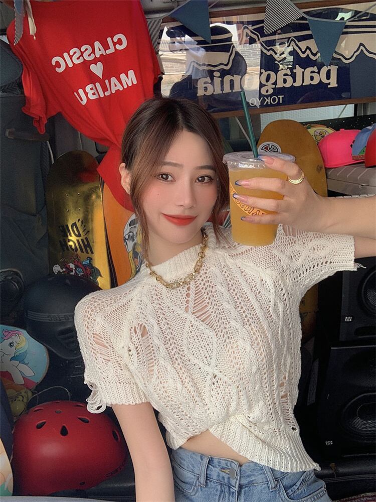 雰囲気のある大人の着こなし。韓国ファッション 気質 薄い ゆったりする スリム 半袖 トップス 春 新作
