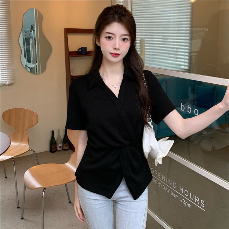 シャツ Vネック 半袖 トップス レディース 夏 気質 Vネック ピュアカラー 新品