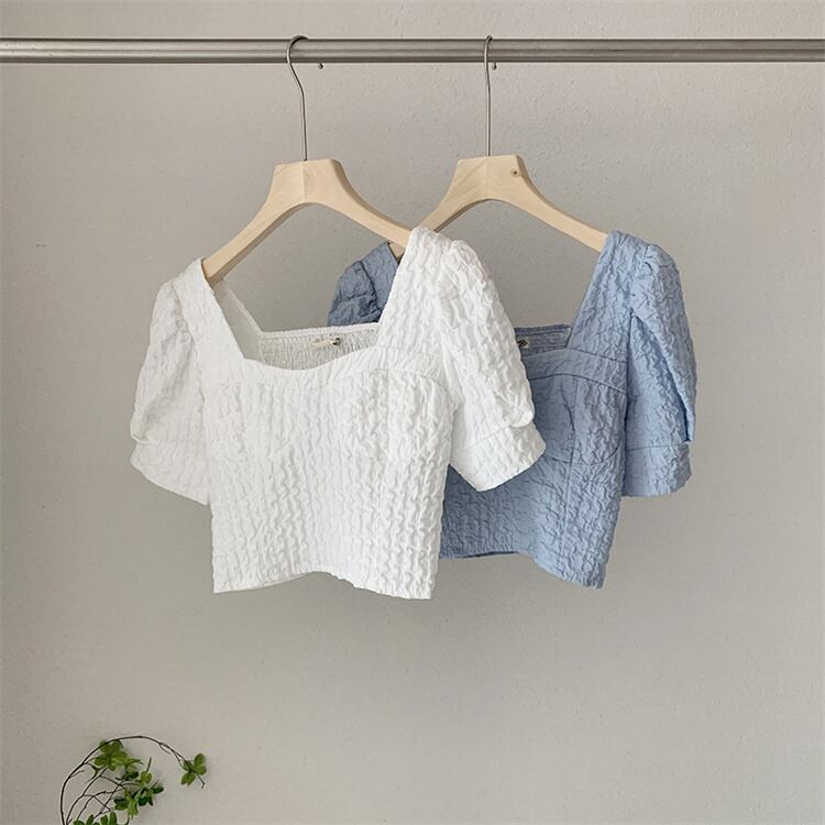 今年売れてます トップス フォールド 半袖 シャツ 夏 スクエアネック 短いスタイル おへそ露出