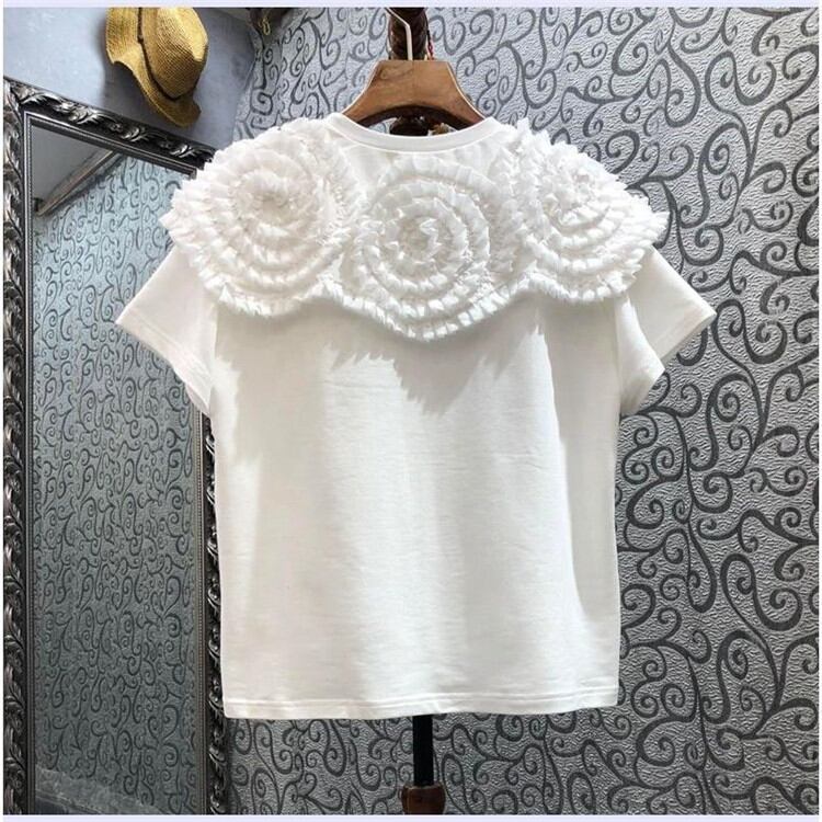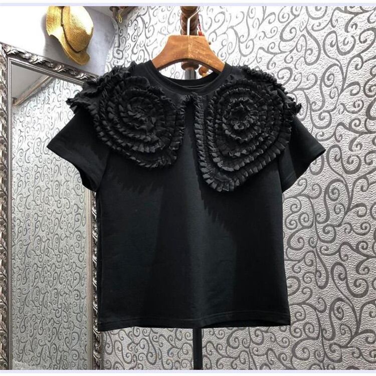 デザインセンス プリーツ プレートフラワー ショール 半袖 トップス 2022年 ヨーロッパとアメリカ