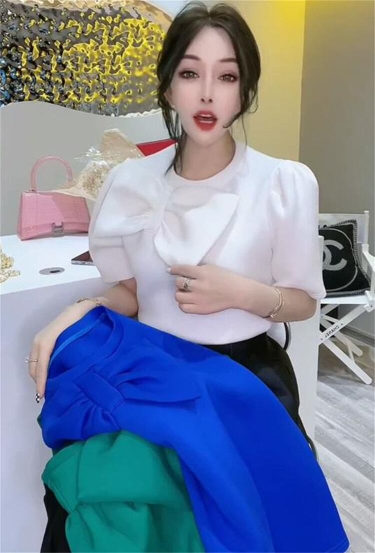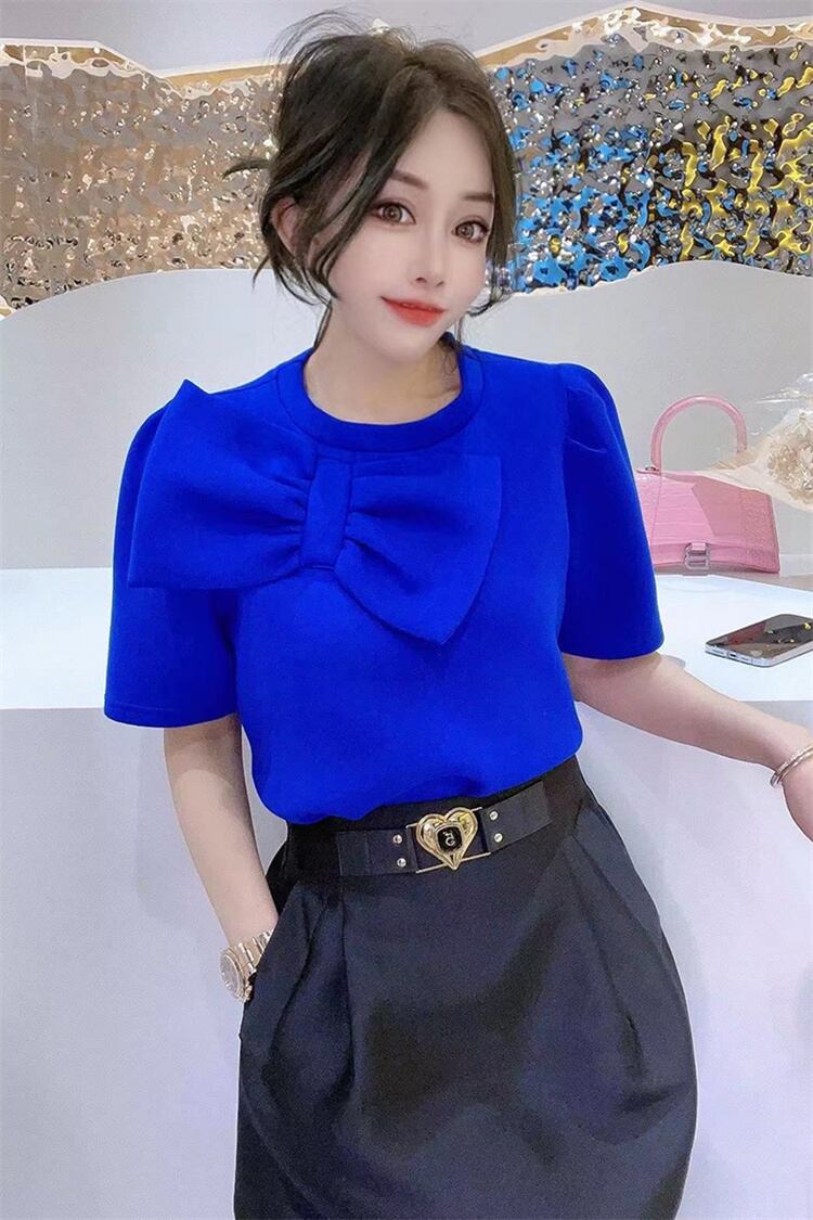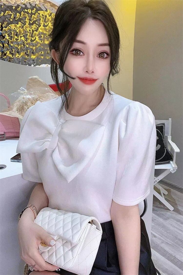 優しい着心地 気質 縫付 快適である トップス 半袖 Tシャツ 蝶結び デザインセンス