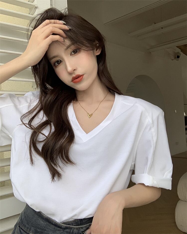 デザインセンス ショルダーパッド ゆったりする 半袖 Tシャツ オシャレ セクシー Vネック トップス