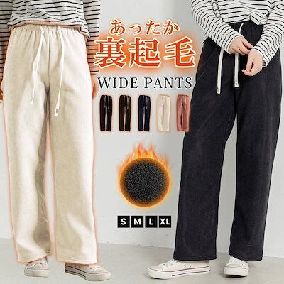 裏起毛 コーデュロイ ワイドパンツ レディース 秋冬 暖かい 防寒 あったか ボトムス ウエストゴム 紐 無地 黒 ロング丈 ゆったり ラフ リラックス ワイド パンツ おしゃれ かわいい 中厚手 起 | OPEN-korea