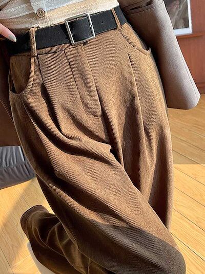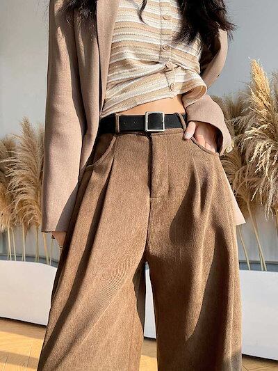 ワイドパンツ レディース コーデュロイ 裏起毛 シンプル ブラウン 白 黒 ベージュ ブラウン 暖かい あったか ハイウエスト かわいい おしゃれ あったか 暖かい ストレート | OPEN-korea